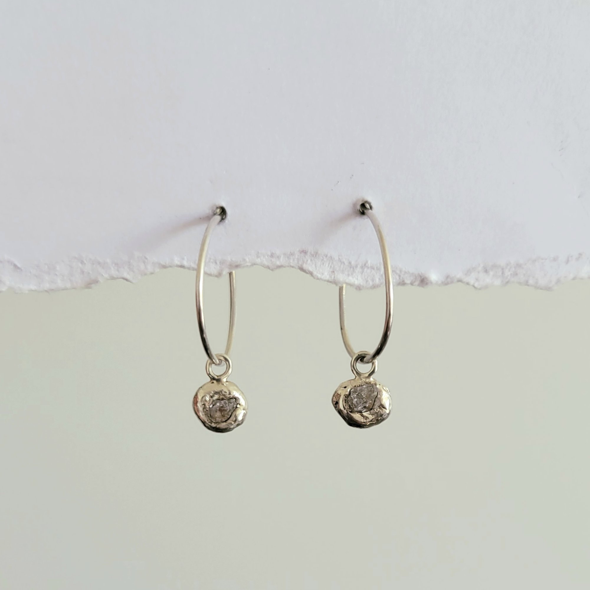 Size: Charms are approx. 6mm at the widest point. Hoops are approx. 15mm wide.