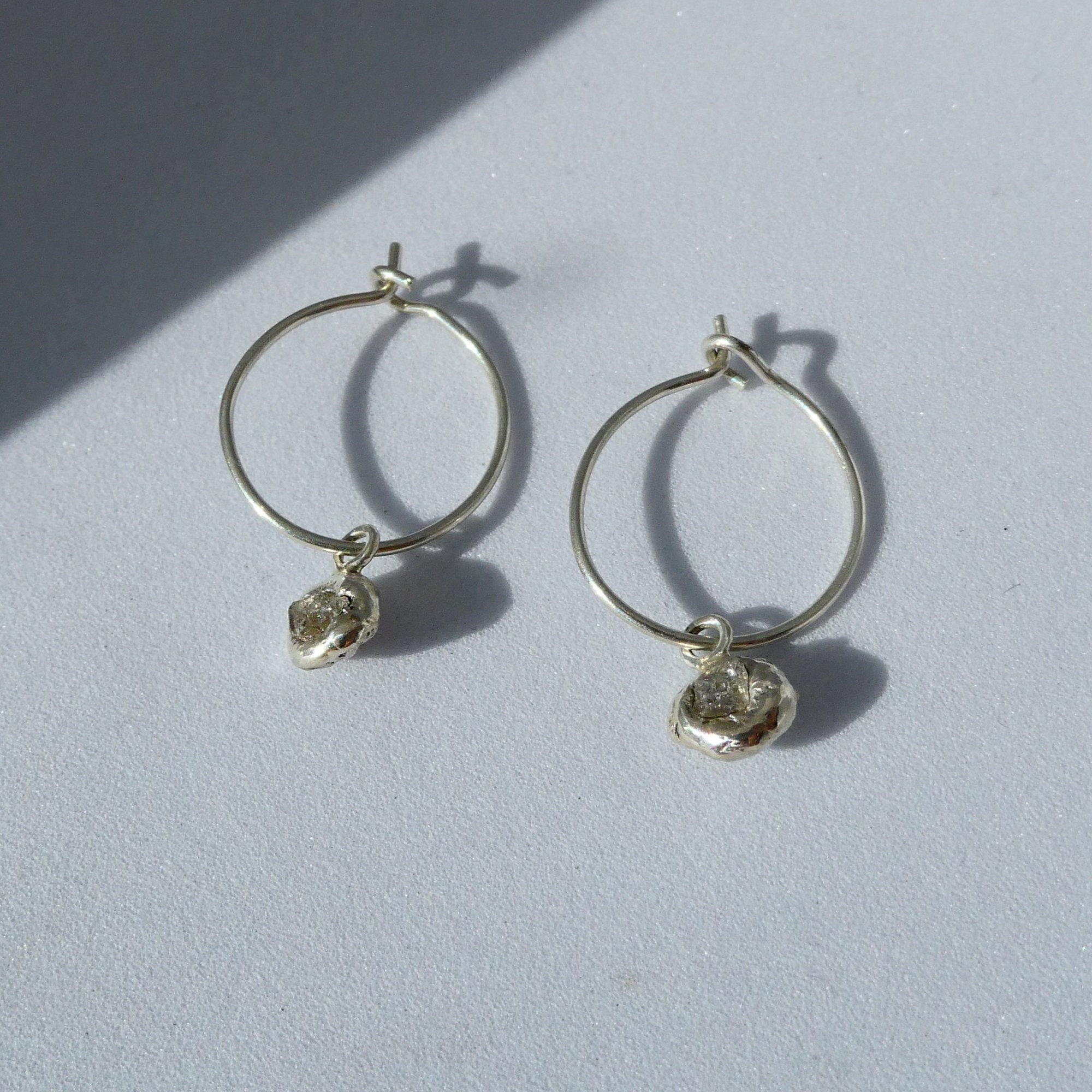 Each molten form is created in the moment: silver scraps melted down and reshaped into something beautifully unpredictable. Paired with responsibly sourced stones, every piece is consciously crafted with raw charm.