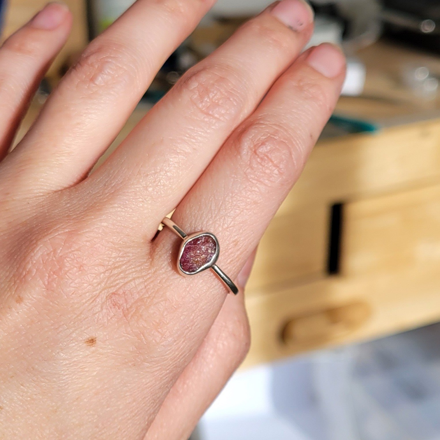 Crystal: Natural, rough pink ruby with no heat treatment