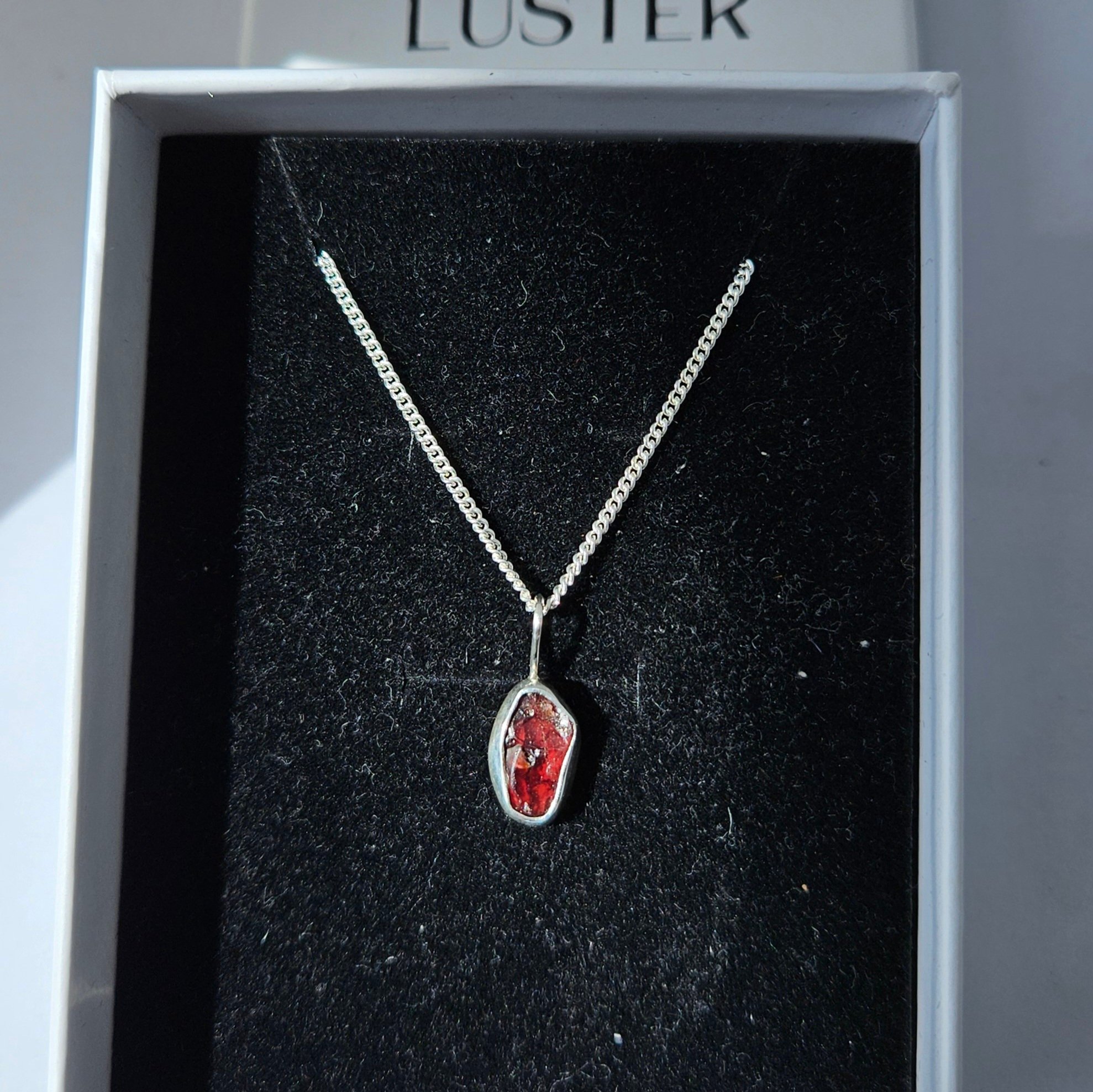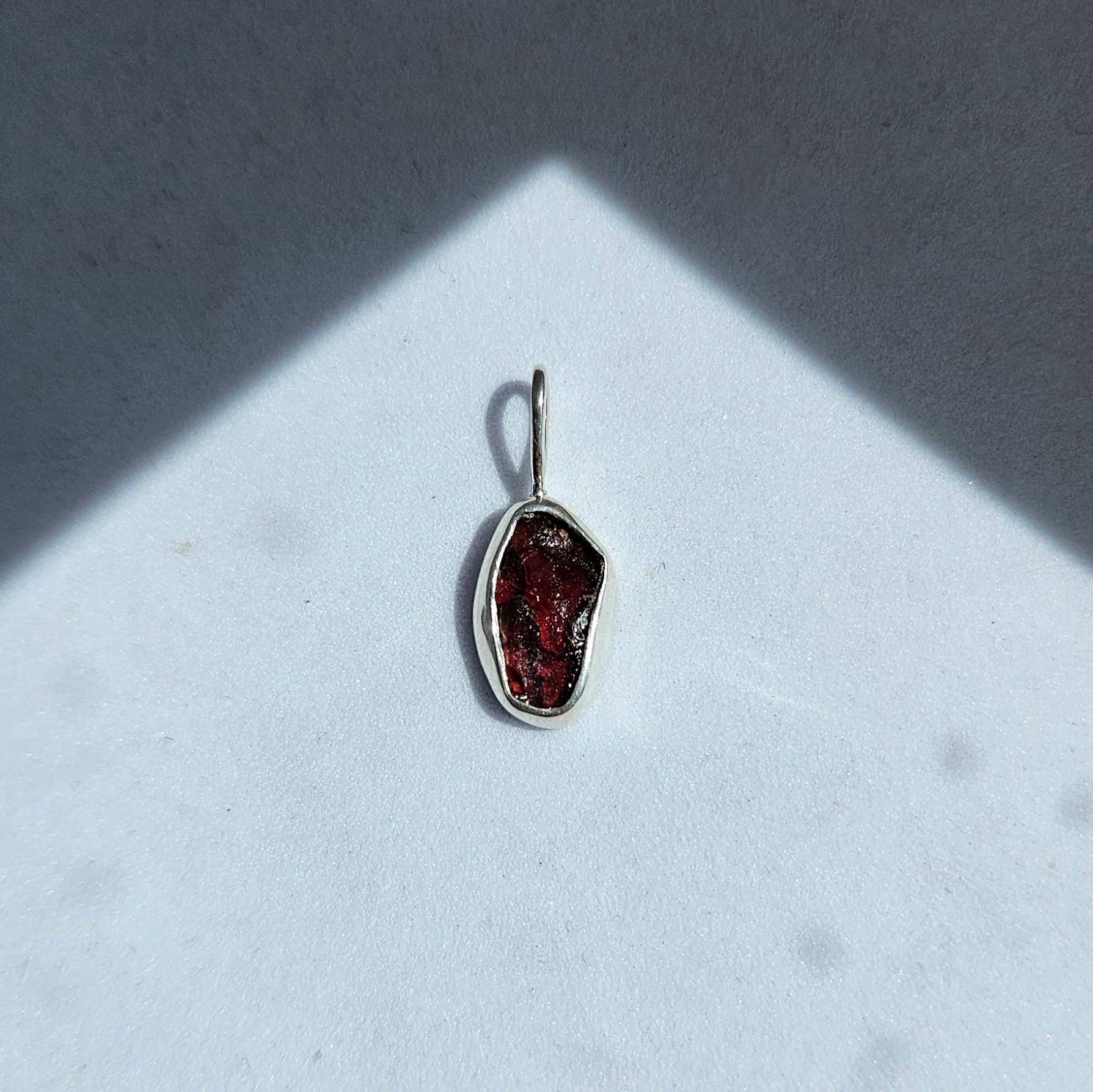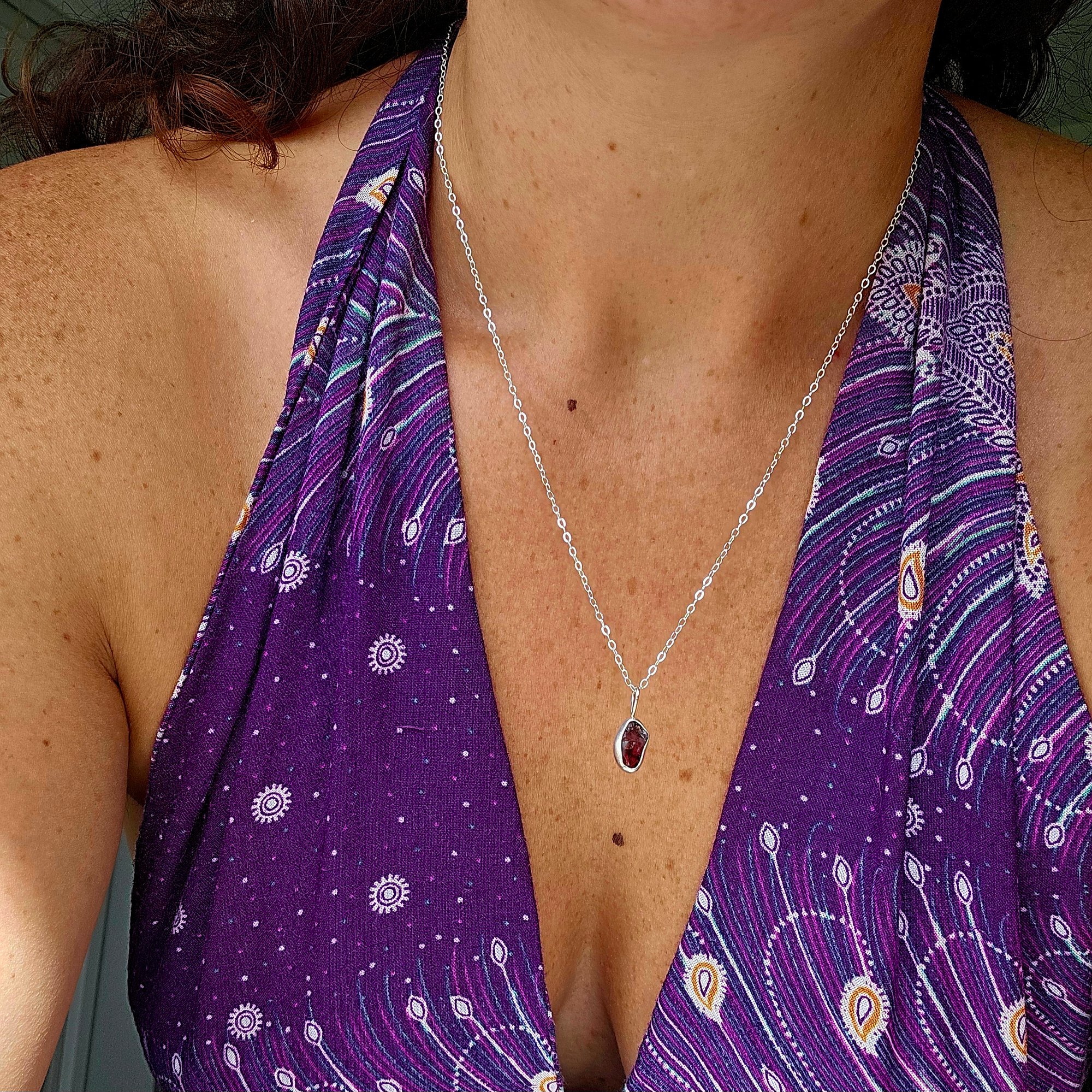 This dark red garnet was responsibly sourced in Mozambique, where the gemstone buyer did capacity building work with local mining communities around gem education and startup funding.